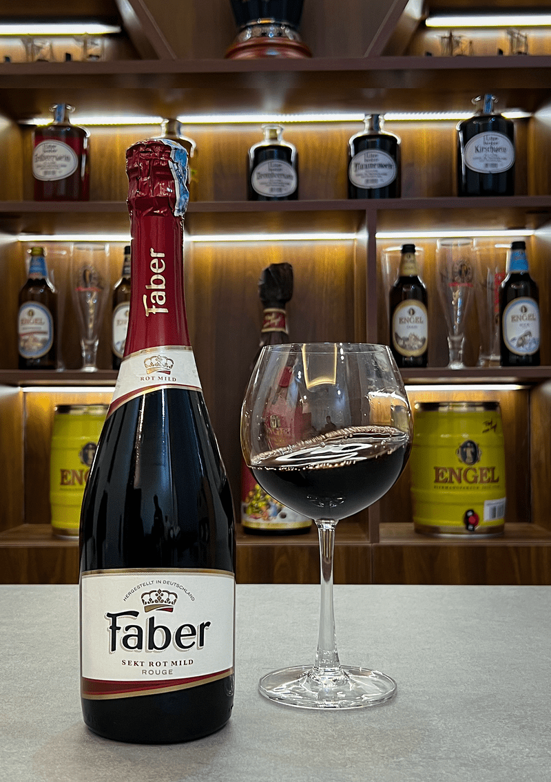 Rượu vang Faber Sekt Rot mild rouge 11.5% 750ml (đỏ) là loại rượu vang sủi có màu đỏ, nồng độ cồn 11,5%, bởi nhà sản xuất rượu nổi tiếng, lâu đời Faber.