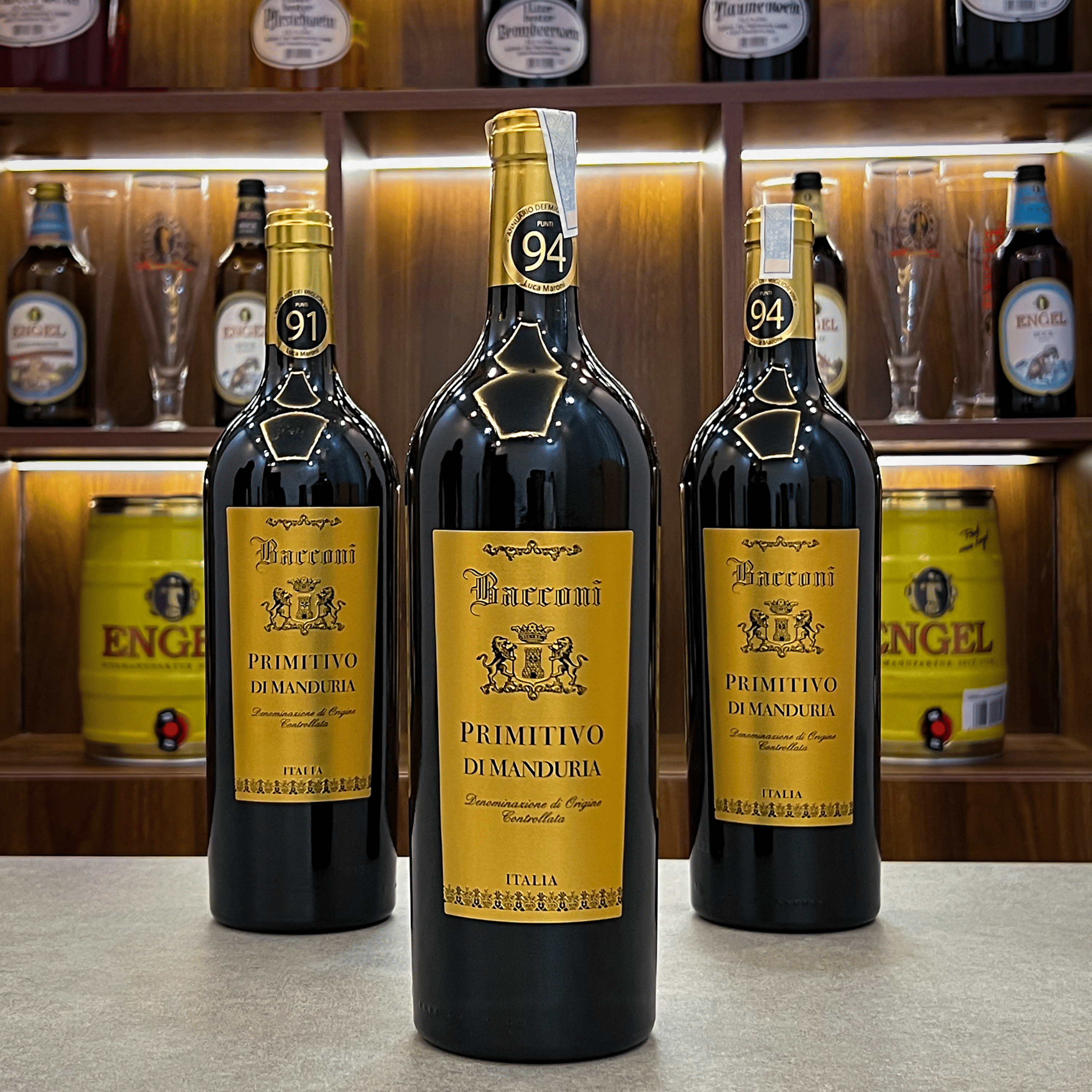 Rượu vang Ý Primitivo di Manduria 2019 Bacconi 14.5% là sự pha trộn của các loại trái cây mọng đỏ, vani, hương bánh nướng và gia vị, tạo nên một bó hoa phức hợp và lôi cuốn.